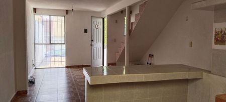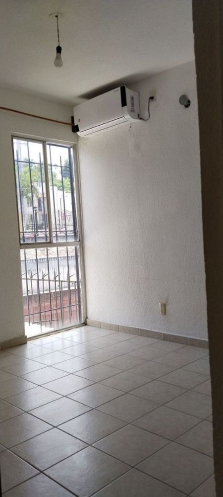 Cuenta con dos recámaras, con climas instalados en la recámara principal. La cocina está equipada y tiene un antecomedor en forma de barra. La sala y el comedor están integrados, lo que permite una mejor convivencia familiar.